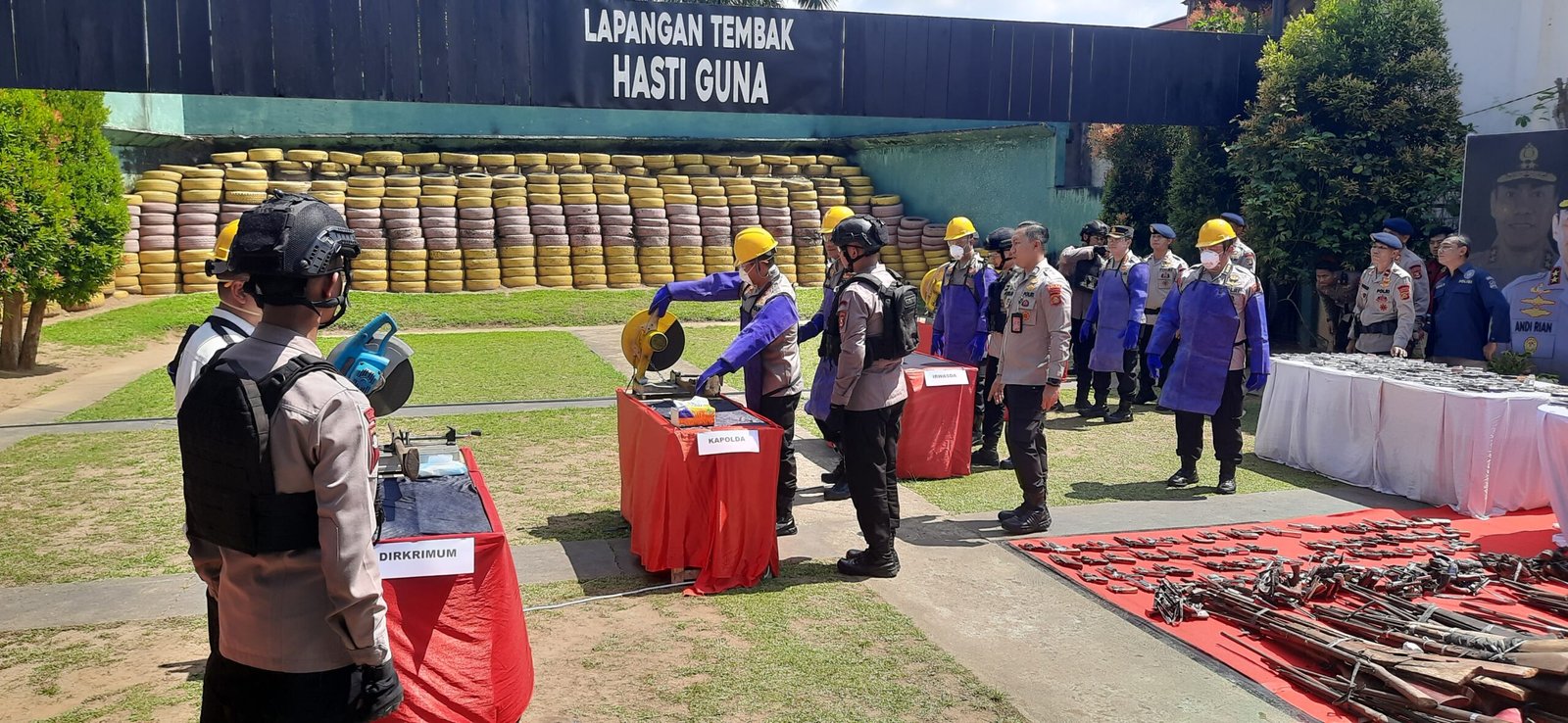 Palembang, Briliannews.com — Polda Sumsel memusnahkan sebanyak 614 pucuk senjata api rakitan laras panjang dan pendek hasil Operasi Senpi Musi Tahun 2024 dan 2025 serta serahan masyarakat.
