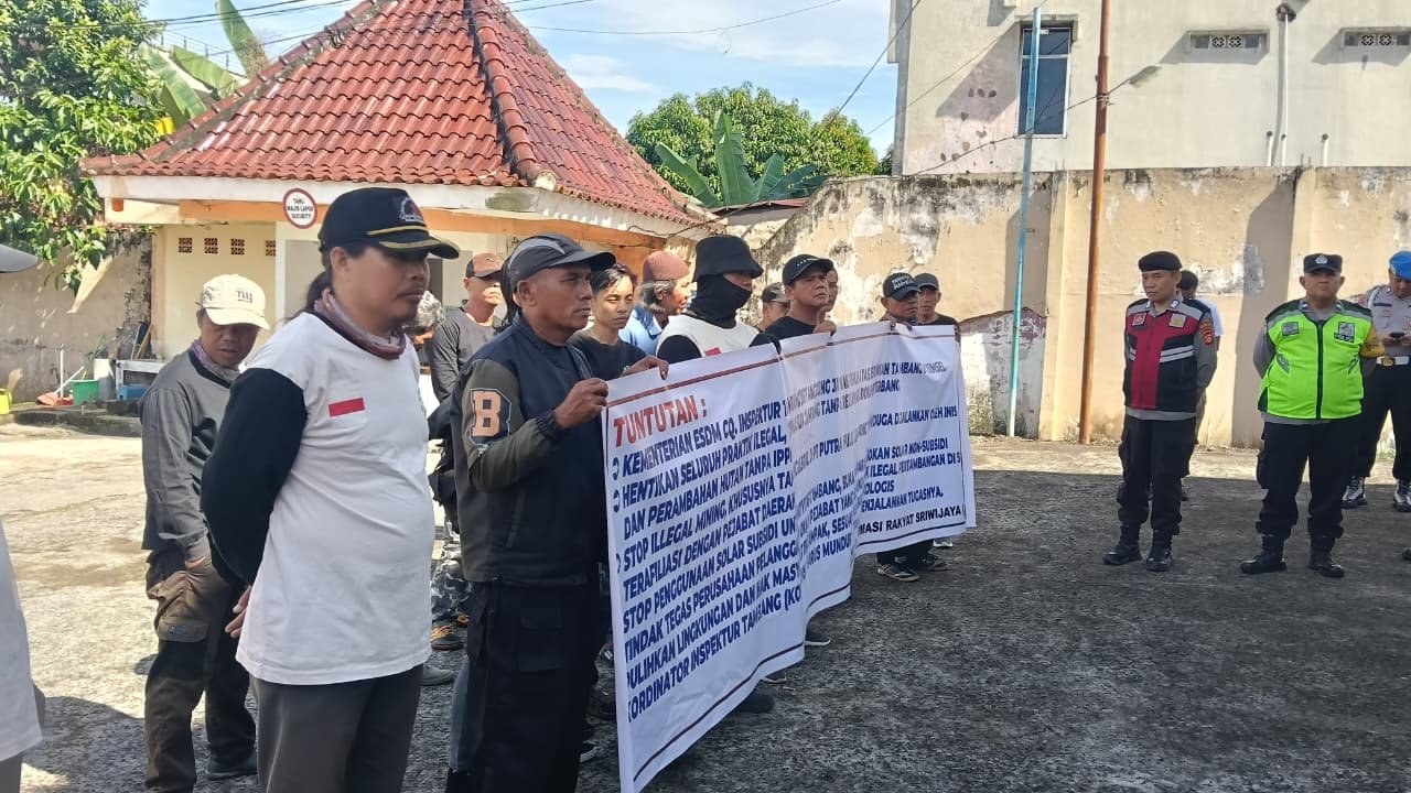 Palembang, Briliannews.com — Puluhan aktivis dari Suara Informasi Rakyat (SIRA) Sriwijaya menggelar aksi di Gedung Inspektur Tambang Sumsel, Palembang, Jumat (12/9/2025).