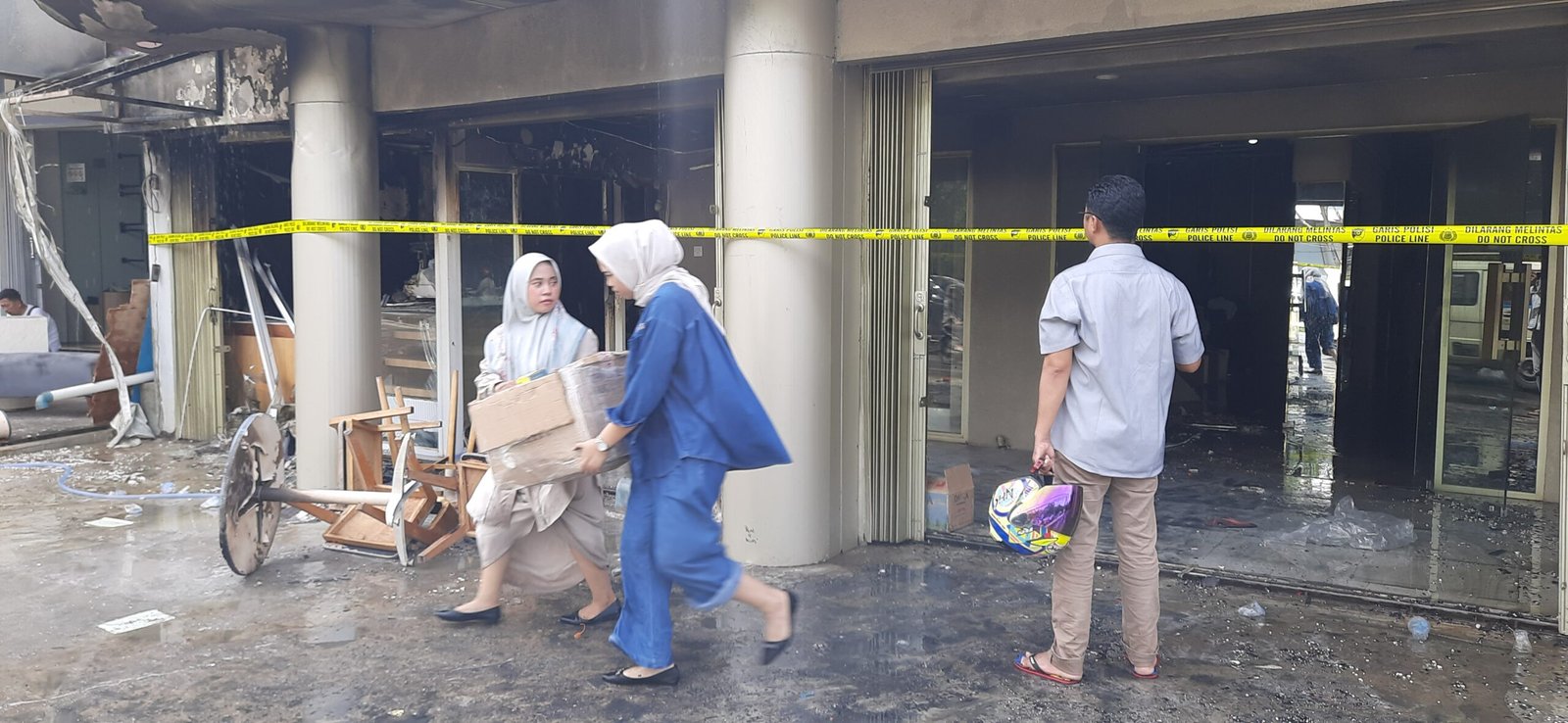Meski begitu, ada sebagian karyawan yang masih sempat menyelamatkan pakaian, jilbab dan sepatu yang berada didalam toko keluar dari bangunan.
