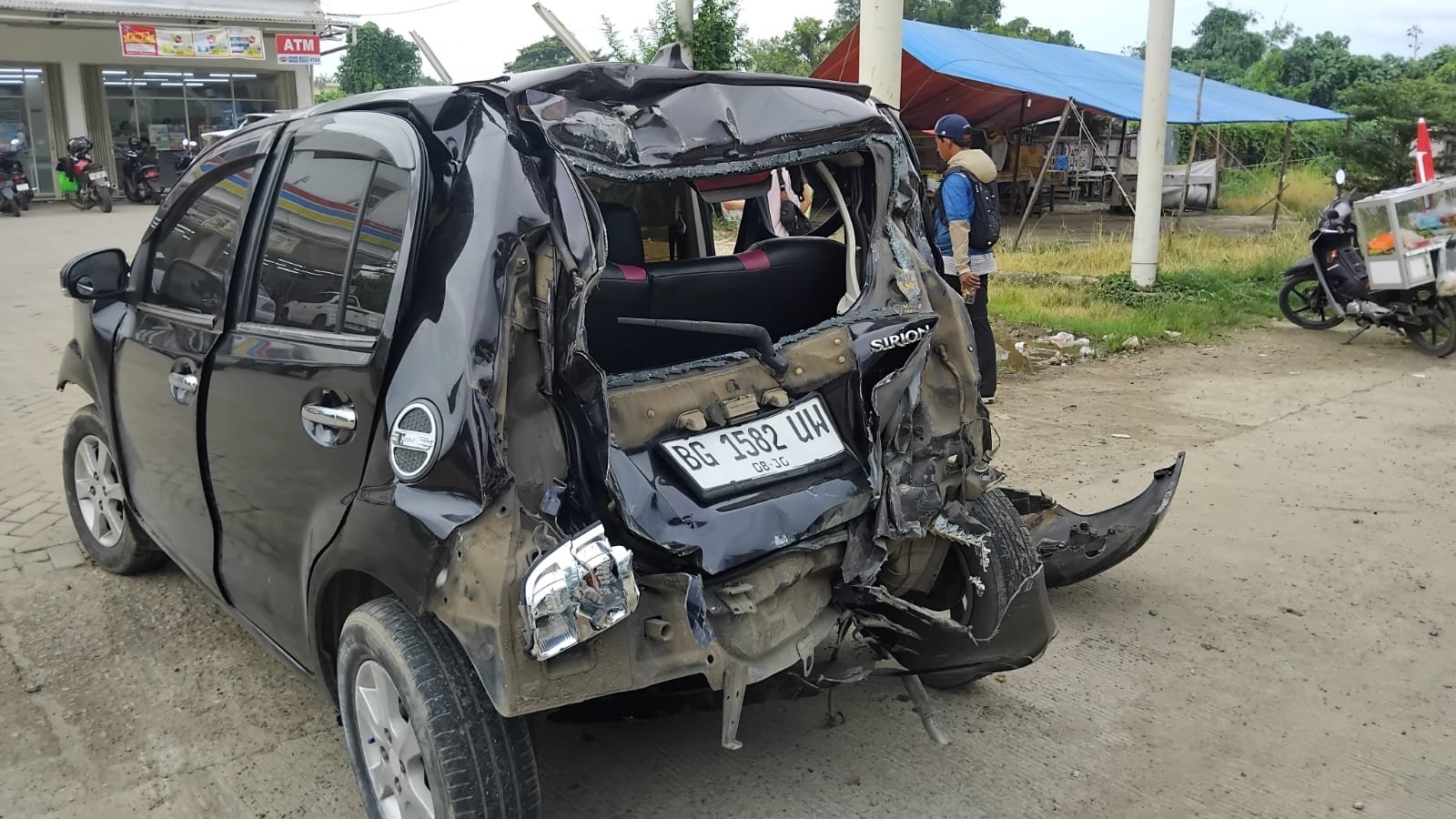 Diketahui Sopir mobil Sirion dikemudikan oleh Tauhid (35) warga Jalan Tanjung Barangan bersama istri dan anaknya.