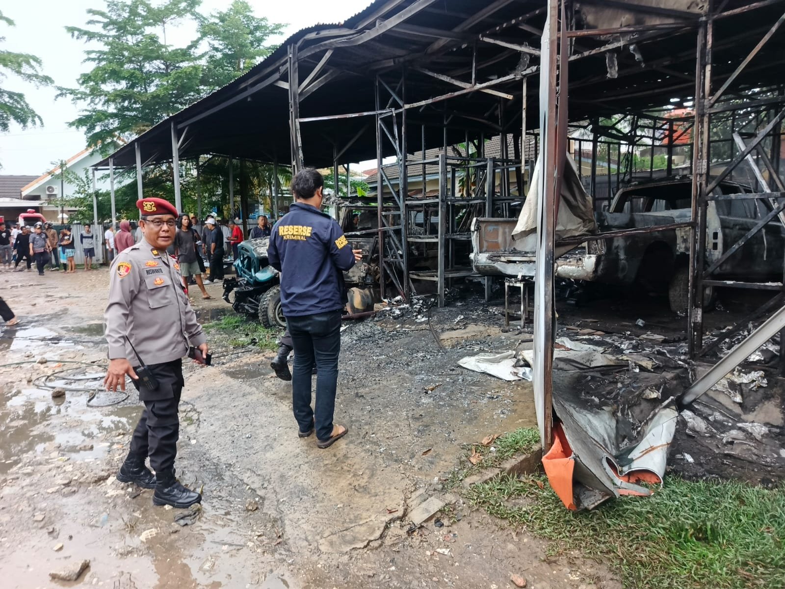 Dugaan sementara mengarah pada korsleting listrik atau percikan api dari peralatan bengkel.