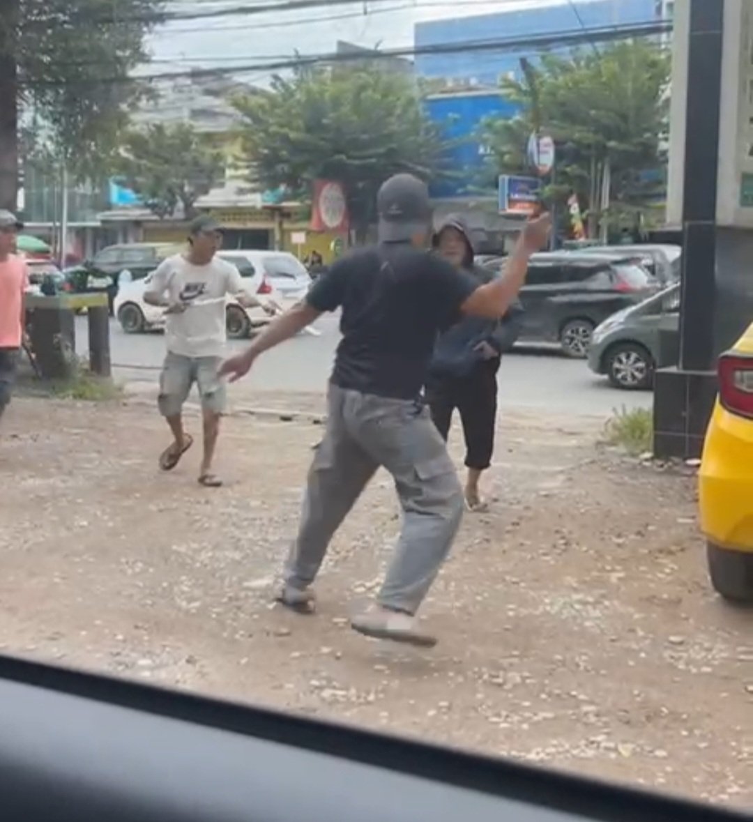 Palembang, Briliannews.com — Peristiwa saling serang sejumlah pria dengan senjata tajam jenis pedang dan pisau terjadi di depan Bank Mestika Jalan Jenderal Sudirman tepatnya samping gereja Baptis, Kecamatan Kemuning Palembang pada Jumat (13/2/2026) sekitar pukul 11.00 WIB. Video keributan tersebut viral di media sosial.