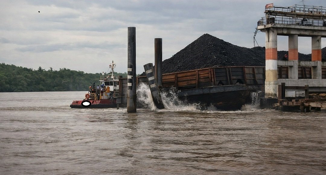 Dalam video yang berdurasi 46 detik tersebut terlihat tongkang bermuatan batubara melintas di alur Sungai Lalan sebelum akhirnya menghantam tiang pancang yang telah terpasang.