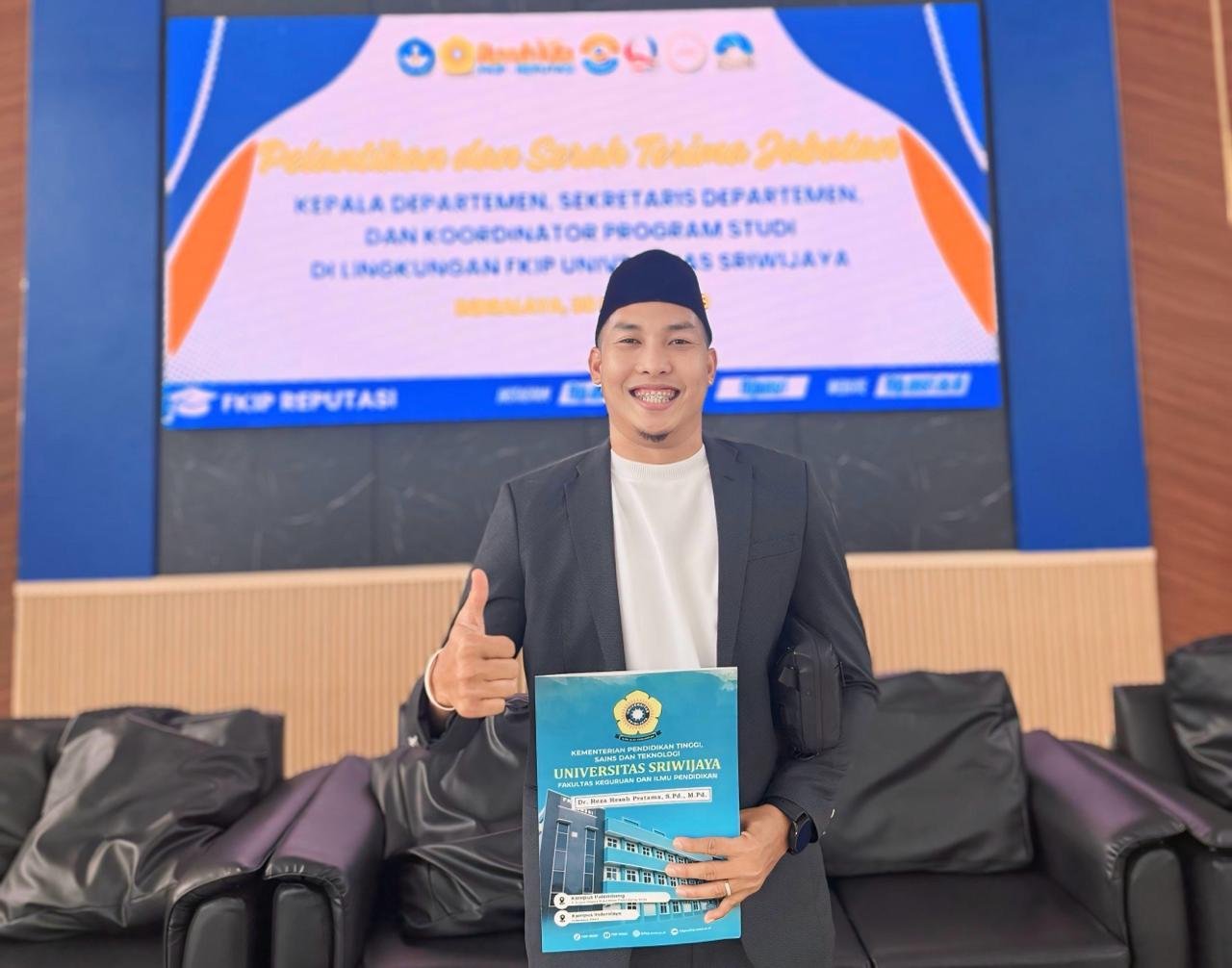 Palembang, Briliannews.com — Sosok Dr Reza Resah Pratama terus menunjukkan kiprahnya di dunia akademik dan olahraga. Selain dikenal sebagai dosen olahraga di Universitas Sriwijaya (Unsri), kini ia juga mengemban amanah baru sebagai Koordinator Program Studi Pendidikan Jasmani, Fakultas Keguruan dan Ilmu Pendidikan (FKIP) Universitas Sriwijaya.