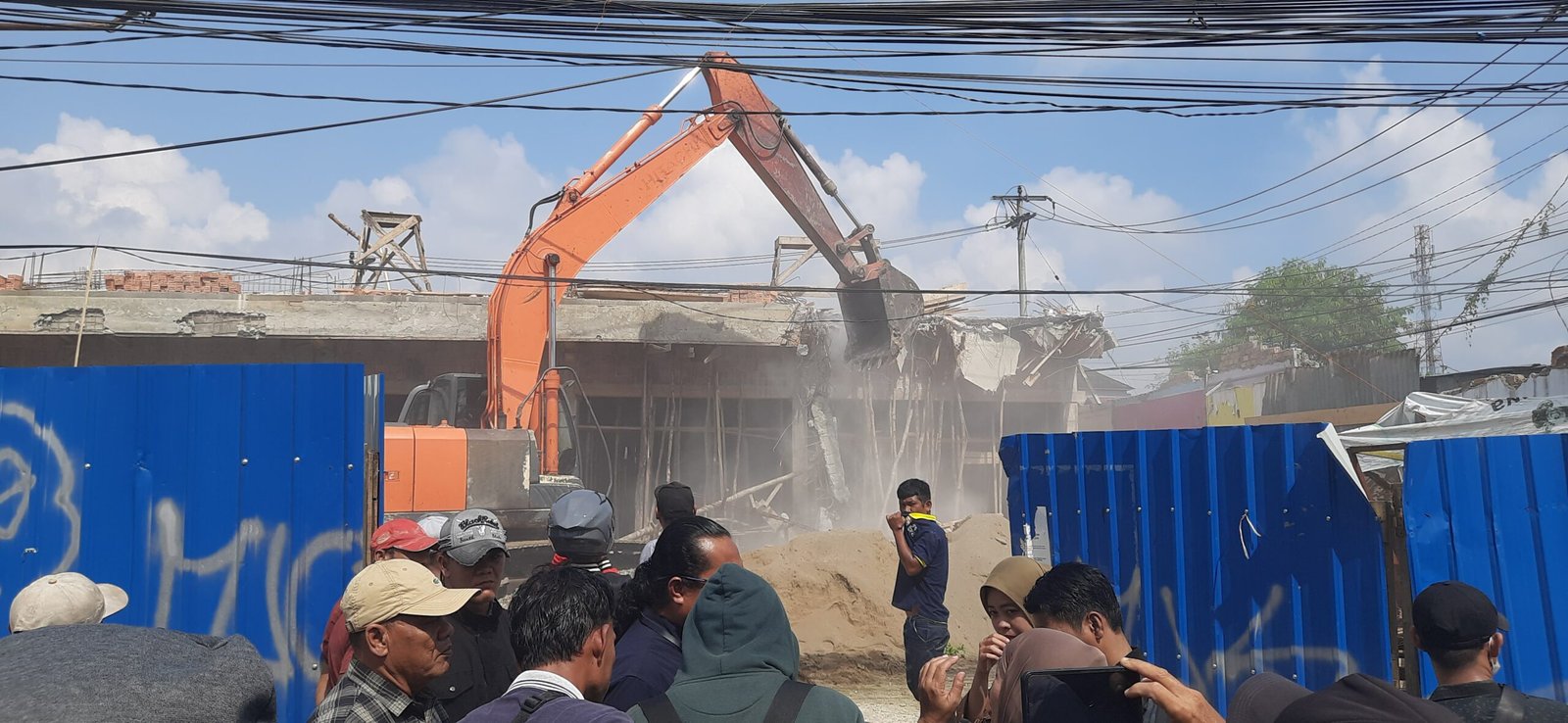 Pembongkaran Ruko yang masih dalam proses pembangunan tersebut dilakukan Pemkot Palembang lantaran tidak memiliki izin serta melanggar tata ruang berdiri atas jalur pipa gas.